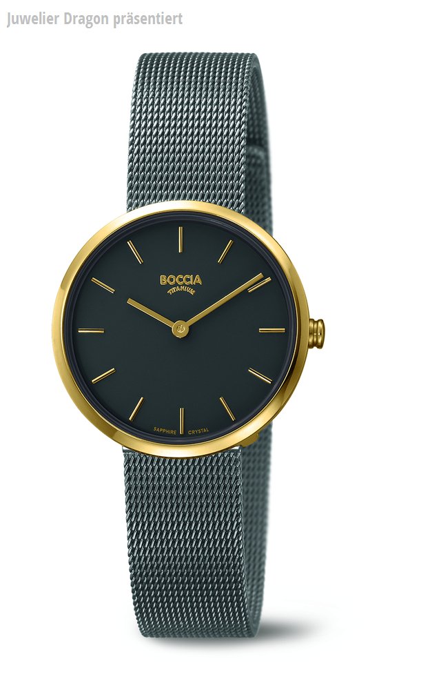 Boccia Uhr aus Reintitian (antiallergisch) mit Milanaise-Edelstahlband.