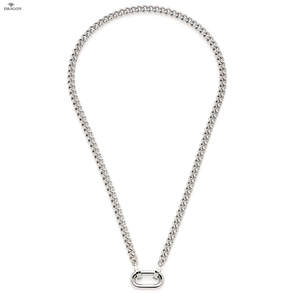 Nicht zu übersehen: die markante Optik dieser kurzen, kräftigen Rund-Panzerkette aus poliertem Edelstahl. Ein Joker in weich abgerundeter Kettenglied-Form wird von zwei Clips gehalten und unterstreicht das opulente Design dieser zeitlos schönen, unbeschwert androgyn wirkenden Basic-Halskette.