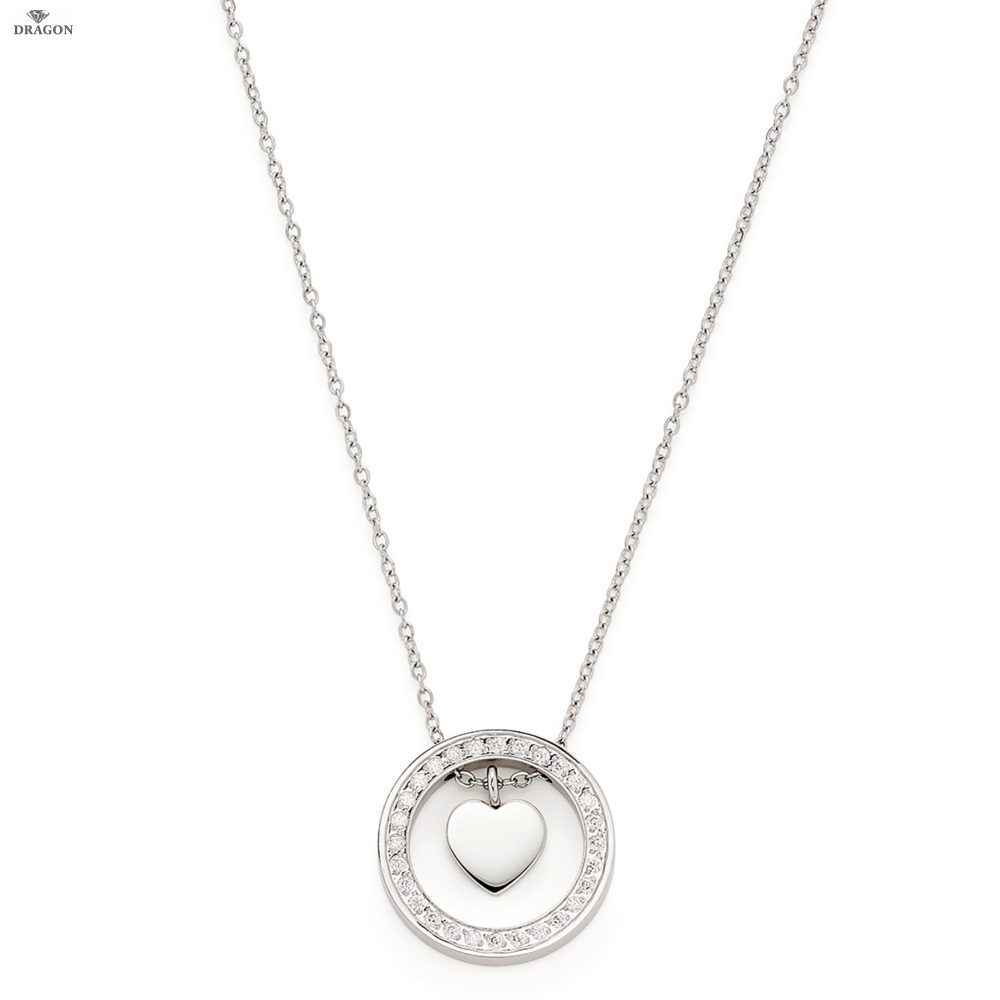 Diese Halskette flüstert leise: Alles Liebe zum Valentinstag! Der kleine, flächige Herzanhänger pendelt in der Mitte des mit Zirkoniasteinchen besetzten und auf dem feinen Ankerkettchen laufenden Ringanhänger und könnte zur Überraschung der Liebsten mit einem Namensbuchstaben graviert werden.