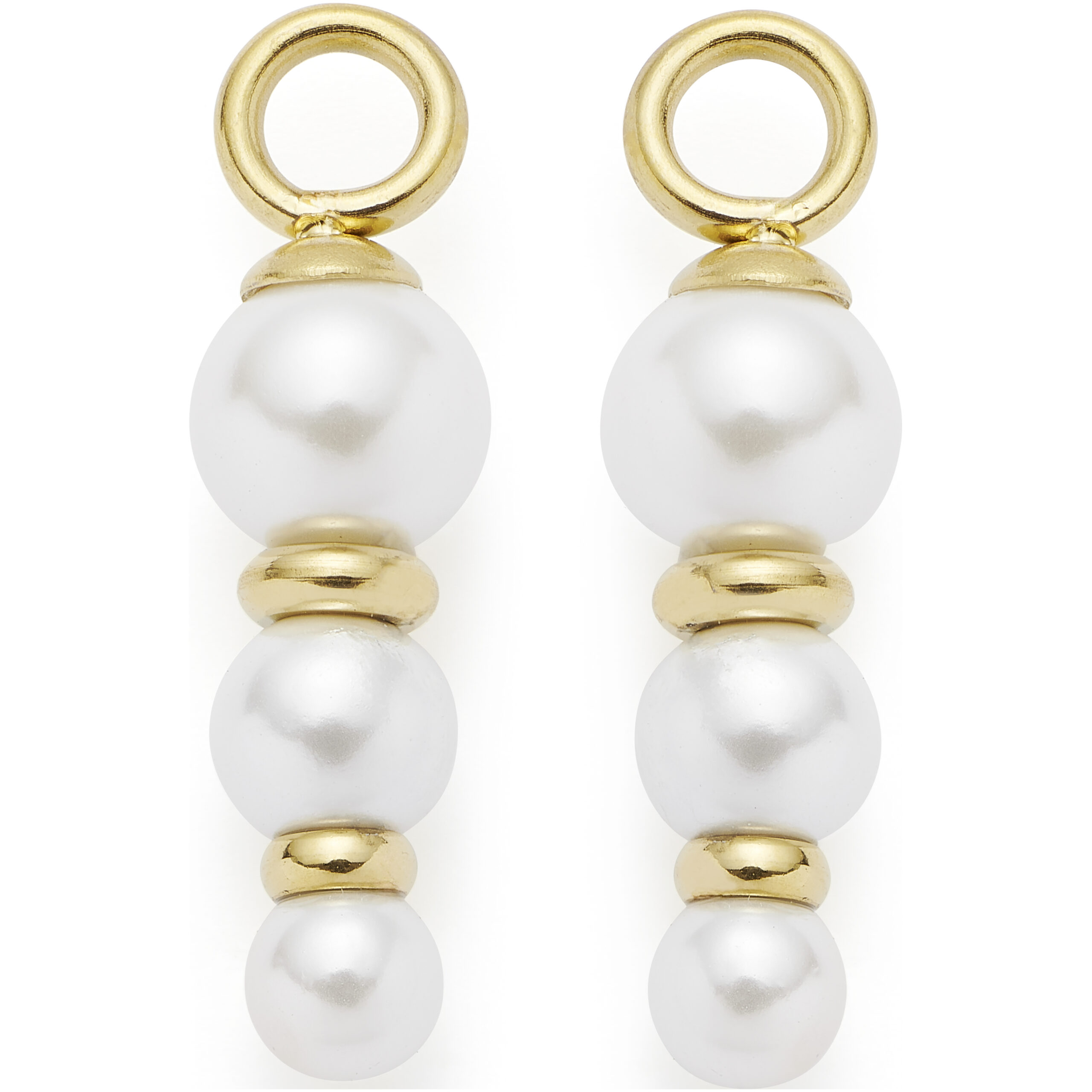 Das Set JUSTINE bringt zeitlose Eleganz an Deine Ohren. Drei edle, natürlich wirkende Perlen in sanftem Größenverlauf reihen sich stilvoll untereinander und werden von feinen, goldfarbenen Scheiben akzentuiert. Mit dem offenen Ring lassen sich die Einhänger ganz einfach an Deine Lieblingskreolen anbringen ? perfekt, um Deinem Ohrschmuck im Handumdrehen einen klassischen, femininen Touch zu verleihen. Ob für den Alltag, das Business-Outfit oder besondere Anlässe ? mit JUSTINE bist Du immer stilvoll unterwegs.