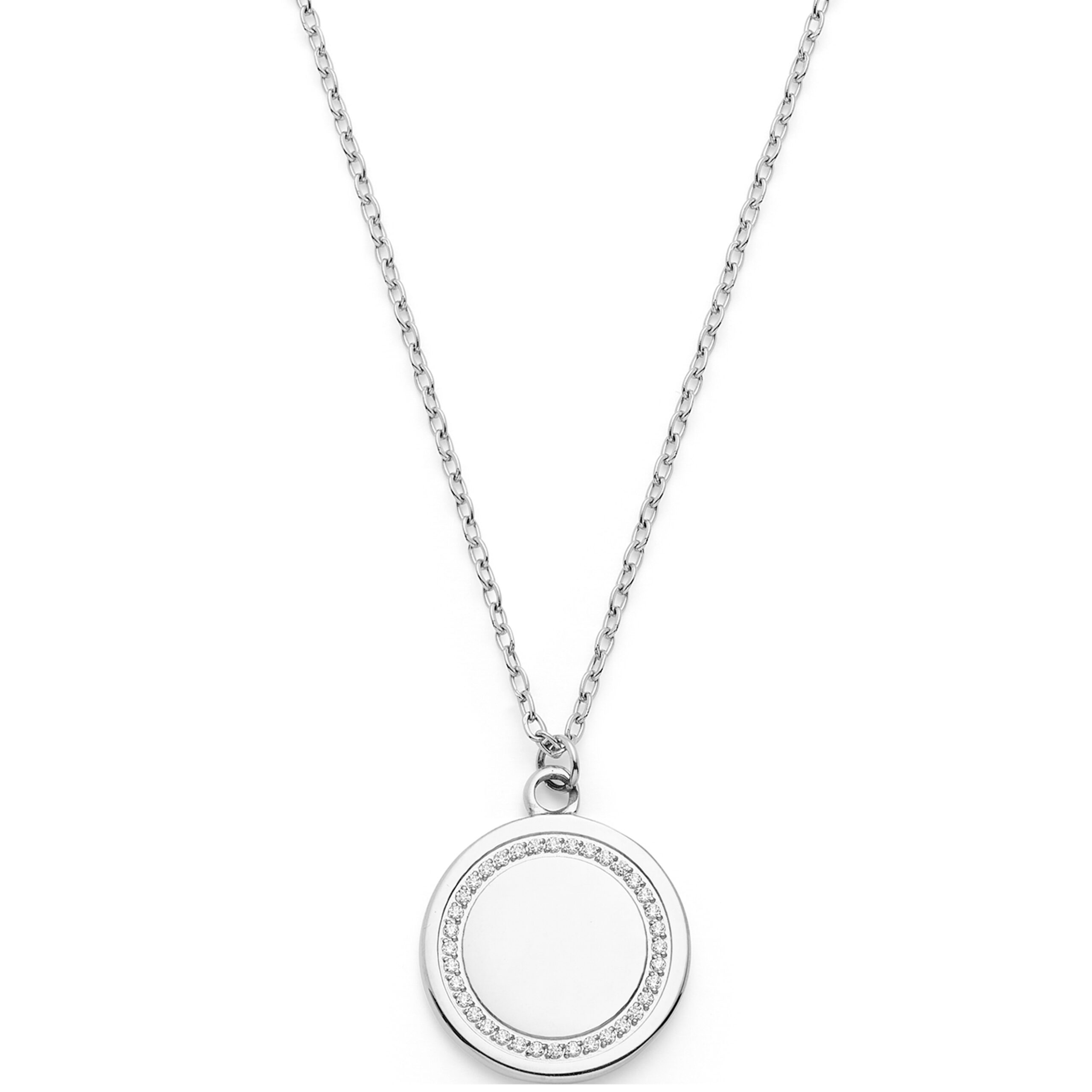 Die Kette FERRARA kombiniert schlichte Eleganz mit einer persönlichen Note. Der runde Anhänger dieser feinen Ankerkette wird von einer funkelnden Pavé-Linie aus Zirkonia-Steinen geziert, die einen dezenten Kreis bildet. Auf der Rückseite bietet der Anhänger Platz für eine Gravur ? perfekt, um Initialen, ein Datum oder ein kleines Symbol zu verewigen. Dank Karabinerverschluss und Verlängerungskette lässt sich die Länge individuell anpassen. Ob in poliertem Edelstahl oder mit goldfarbener Ionenplattierung ? dieses Schmuckstück setzt stilvolle Akzente im Alltag und bei besonderen Momenten.