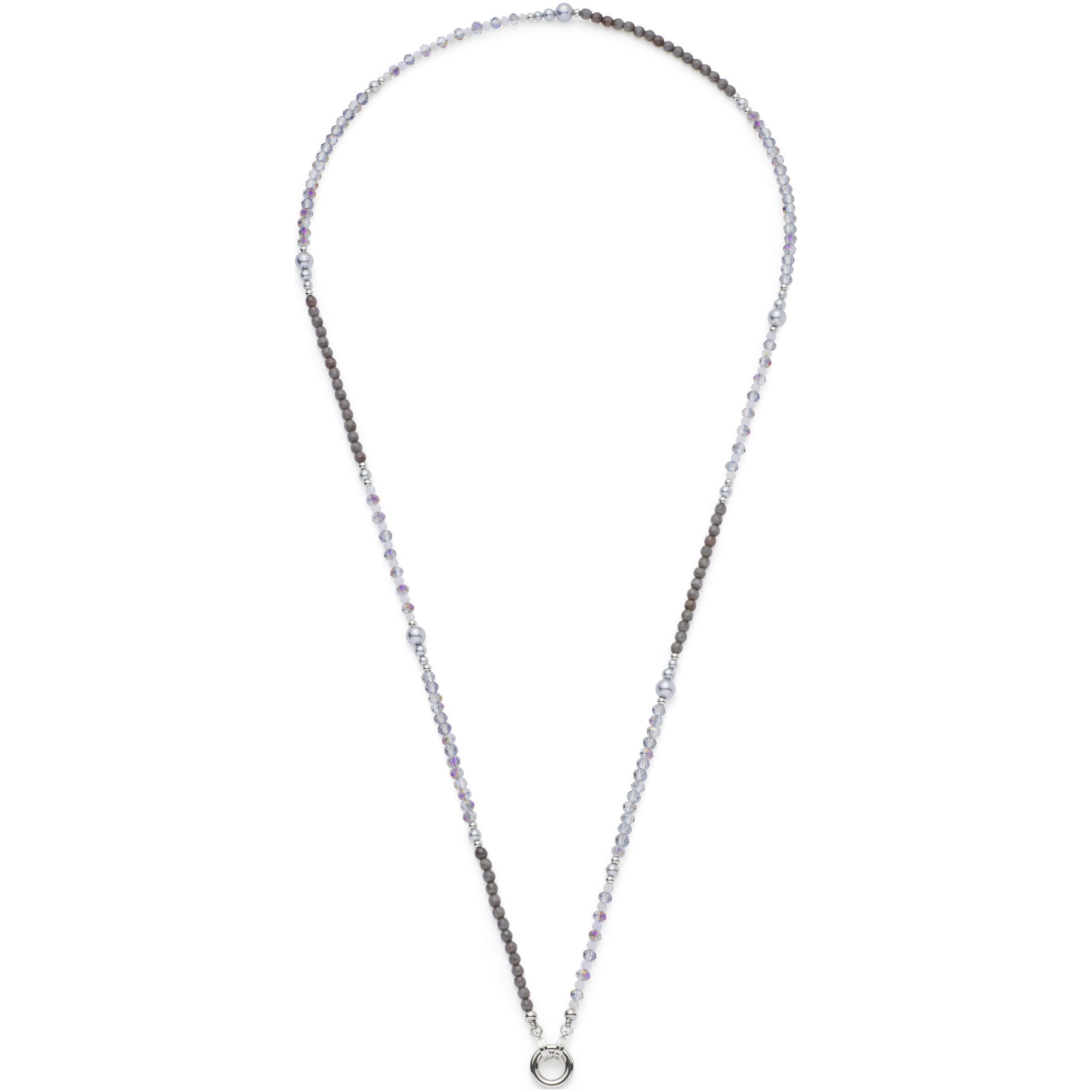 Die Halskette MANON begeistert mit einem faszinierenden Wechselspiel aus Farben und Formen. Gereihte Glasschliffperlen in zartem Grau-Blau treffen auf tiefdunkle Catseye-Perlen und helle Akzente, während natürlich wirkende, graue Perlen in sanftem Größenverlauf für fließende Übergänge sorgen. Die elegante Länge der Kette macht sie zu einem vielseitigen Begleiter ? dezent im Alltag oder als stilvolles Statement.