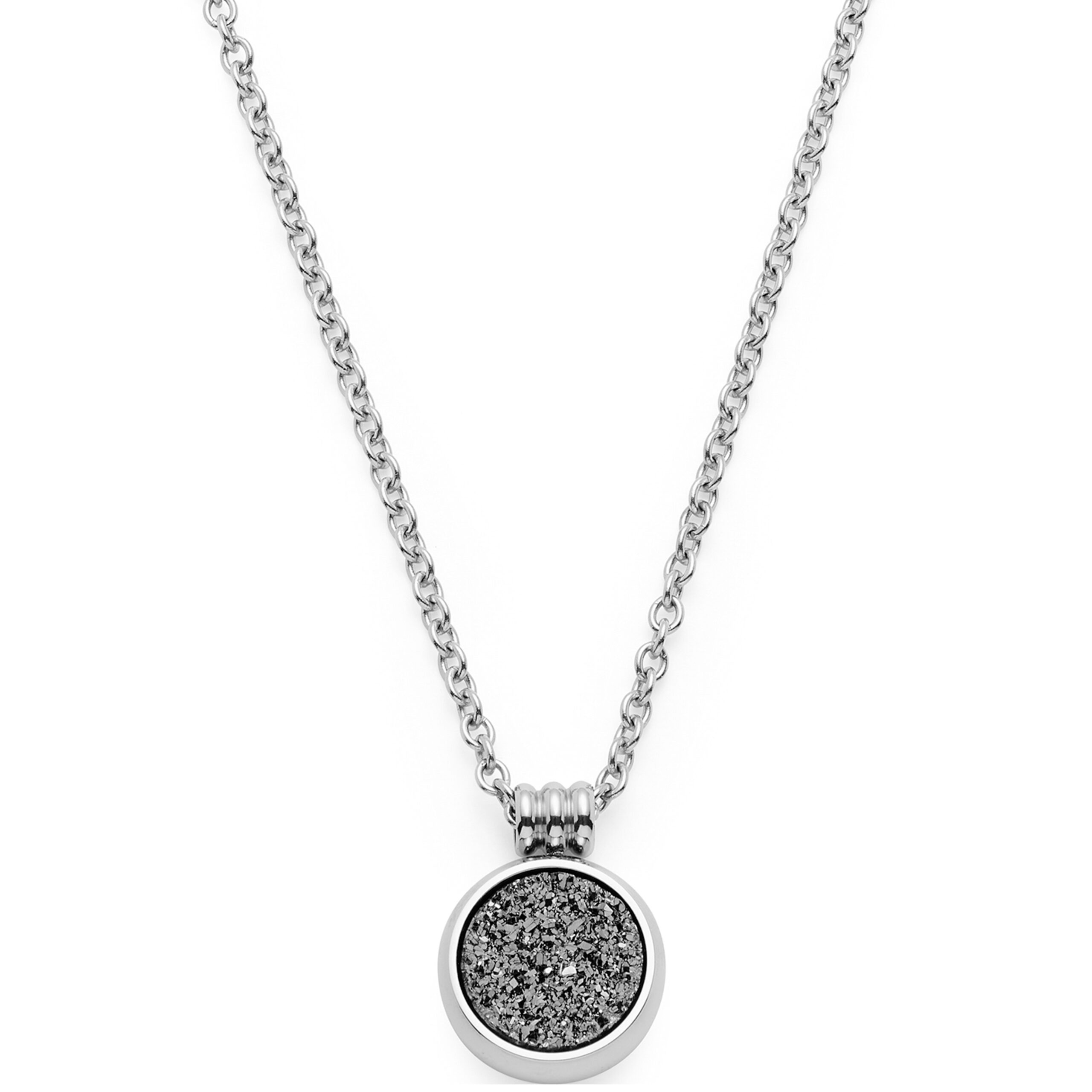 Die Halskette ODELLE verbindet die natürliche Schönheit von Achat mit moderner Eleganz. An der kurzen Weitankerkette hängt ein weich geformter, runder Anhänger, dessen kristalline Oberfläche durch eine Ionenplattierung geheimnisvoll funkelt. Die dreiteilige Aufhängung verleiht dem Design zusätzliche Raffinesse. Ob in schlichter Edelstahl-Optik oder in warmer Goldvariante ? diese Kette ist ein stilvoller Blickfang, der sowohl im Alltag als auch zur festlichen Garderobe glänzt. Dank Karabinerverschluss mit Verlängerungskette lässt sich die Länge flexibel anpassen.