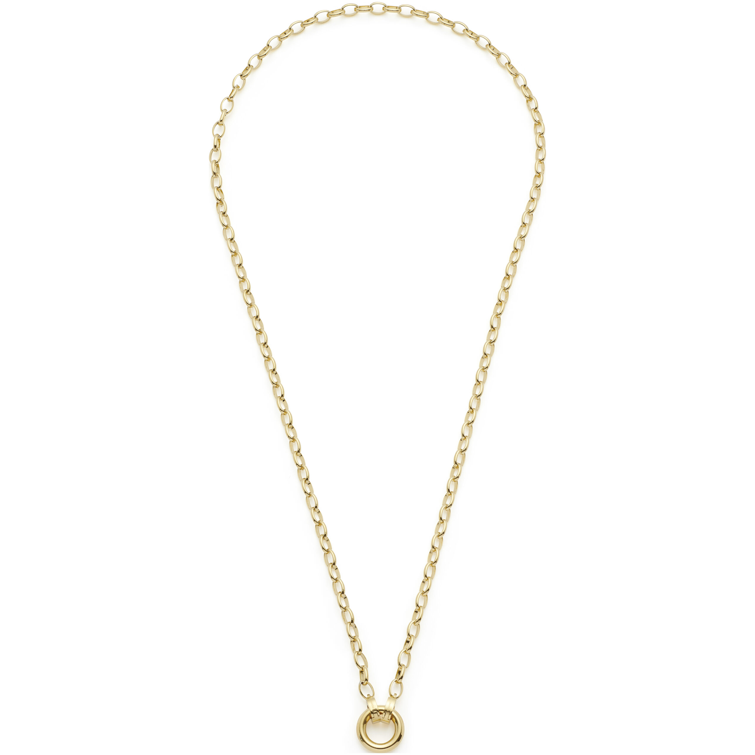 Die Halskette TOMKE in edler Goldoptik verbindet minimalistisches Design mit individueller Gestaltungsfreiheit. Die ovale Weitankerkette mit halbrundem Profil wirkt dezent und modern zugleich. Zwei Clips halten den schlichten Ring, der Dir Raum für Deine Kreativität lässt ? gestalte Dein Schmuckstück täglich neu mit einem oder zwei Clip & Mix Anhängern.