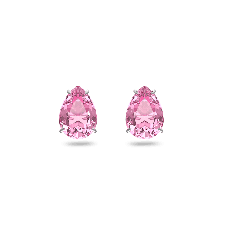 Diese pinken Ohrstecker bestehen aus einzelnen Tropfen geschliffenen Kristallen in rhodinierten Fassungen. Ob als Paar getragen oder übereinander geschichtet für Ohren mit mehreren Piercings, diese äußerst vielseitigen Ohrringe feiern die Magie von Kristallschliffen und -farben. Diese Ohrringe sind Teil der Gema-Familie, entworfen von der Kreativdirektorin Giovanna Engelbert für die Kollektion II.