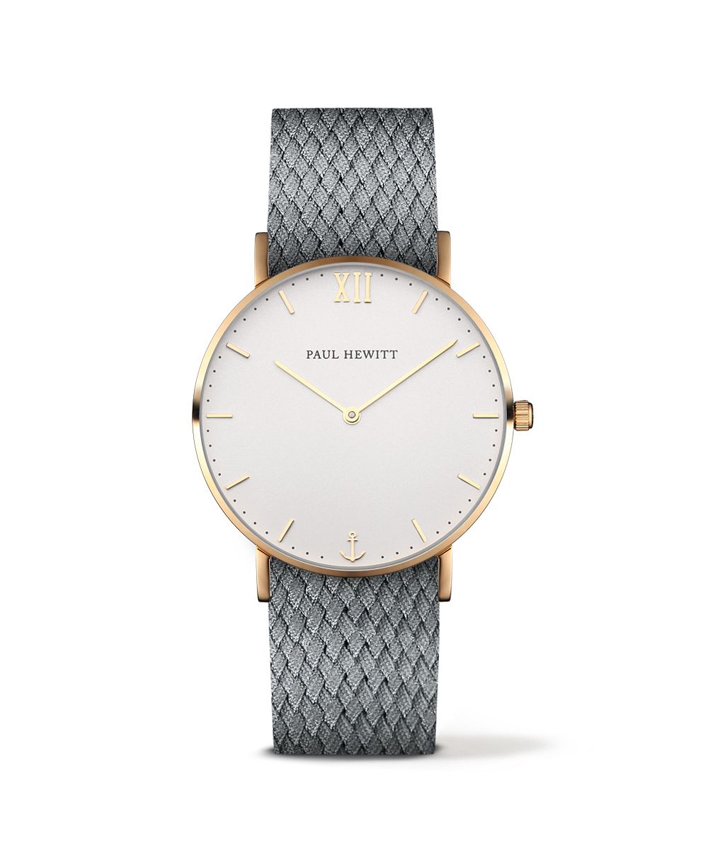 Paul Hewitt Uhr Sailor Line White Sand IP Gold 36mm Perlon Grau 220mm