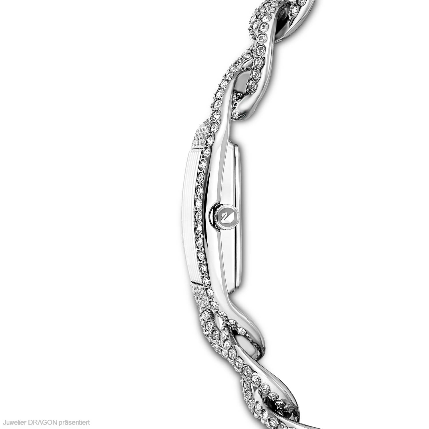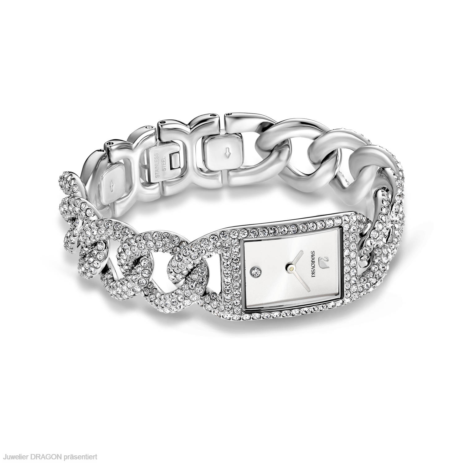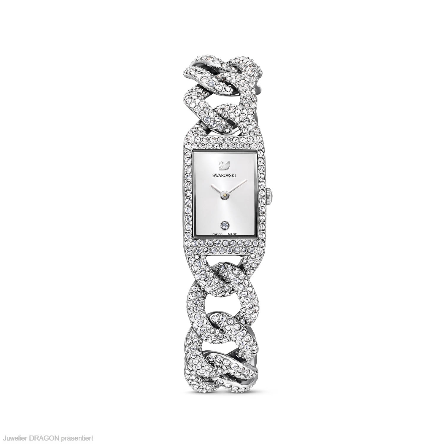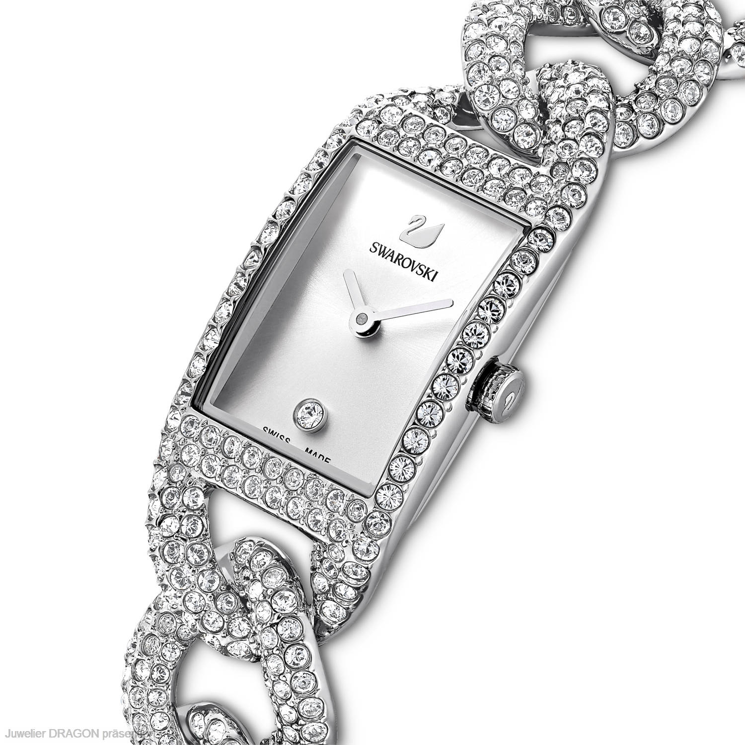 Das ist Power im Design! Mit dieser Armbanduhr von Swarovski stehst du garantiert überall im Mittelpunkt. Das silberfarben schimmernde Sonnenstrahl-Finish des Zifferblatts und das schimmernde Uhrengehäuse vereinen sich mit den sanft ineinandergreifenden Gliedern des Armbands zu einem organisch fließenden Look. Rund 900 präzise geschliffene Kristalle in der brillanten Pavé-Technik von Swarovski sorgen für einen funkelnden Tanz des Lichts. Das Zifferblatt mit einem Kristallindex und dem Swarovski Logo auf Position 12 sorgt für klassische Schönheit. Diese hochwertige Swiss Made Armbanduhr verleiht jedem Look eine Extraportion Glamour und ist perfekt für den besonderen Anlass.