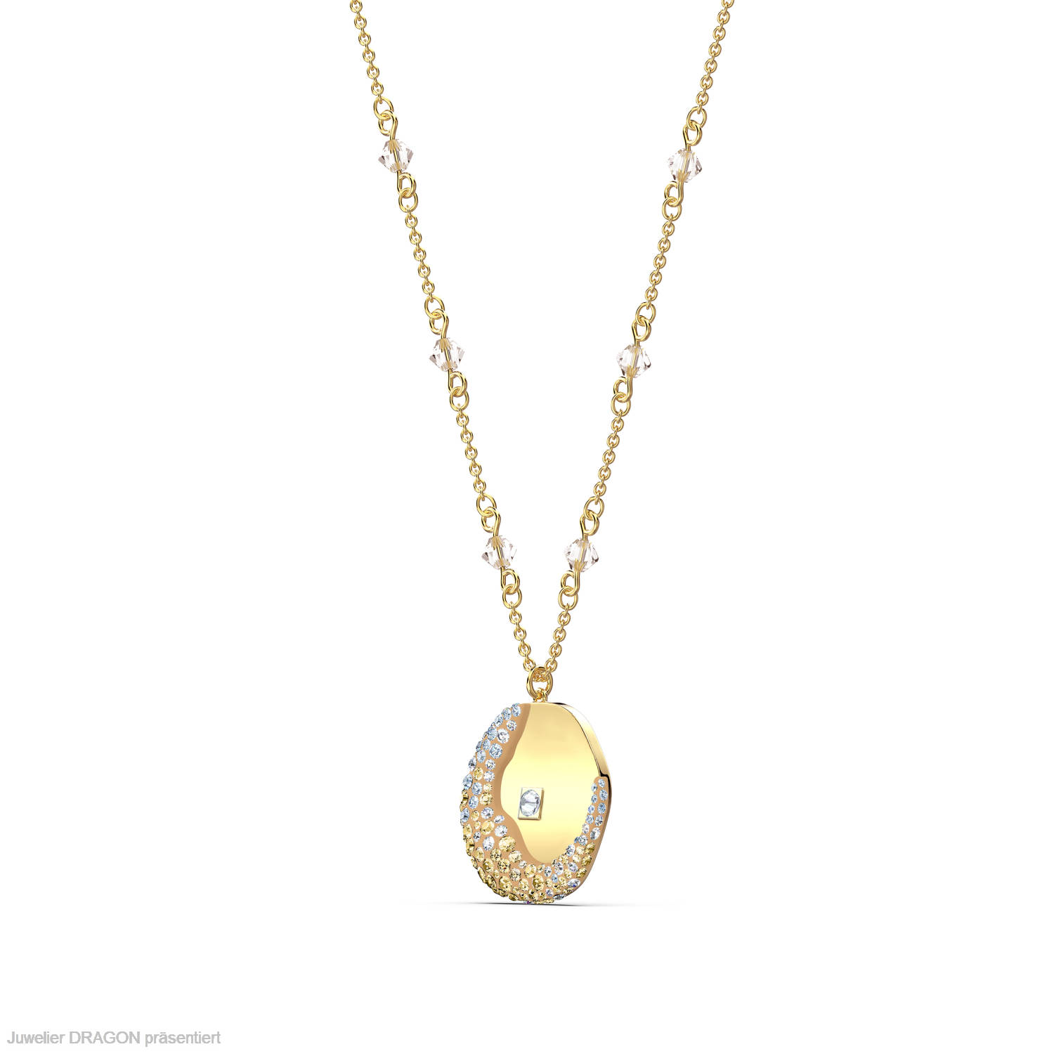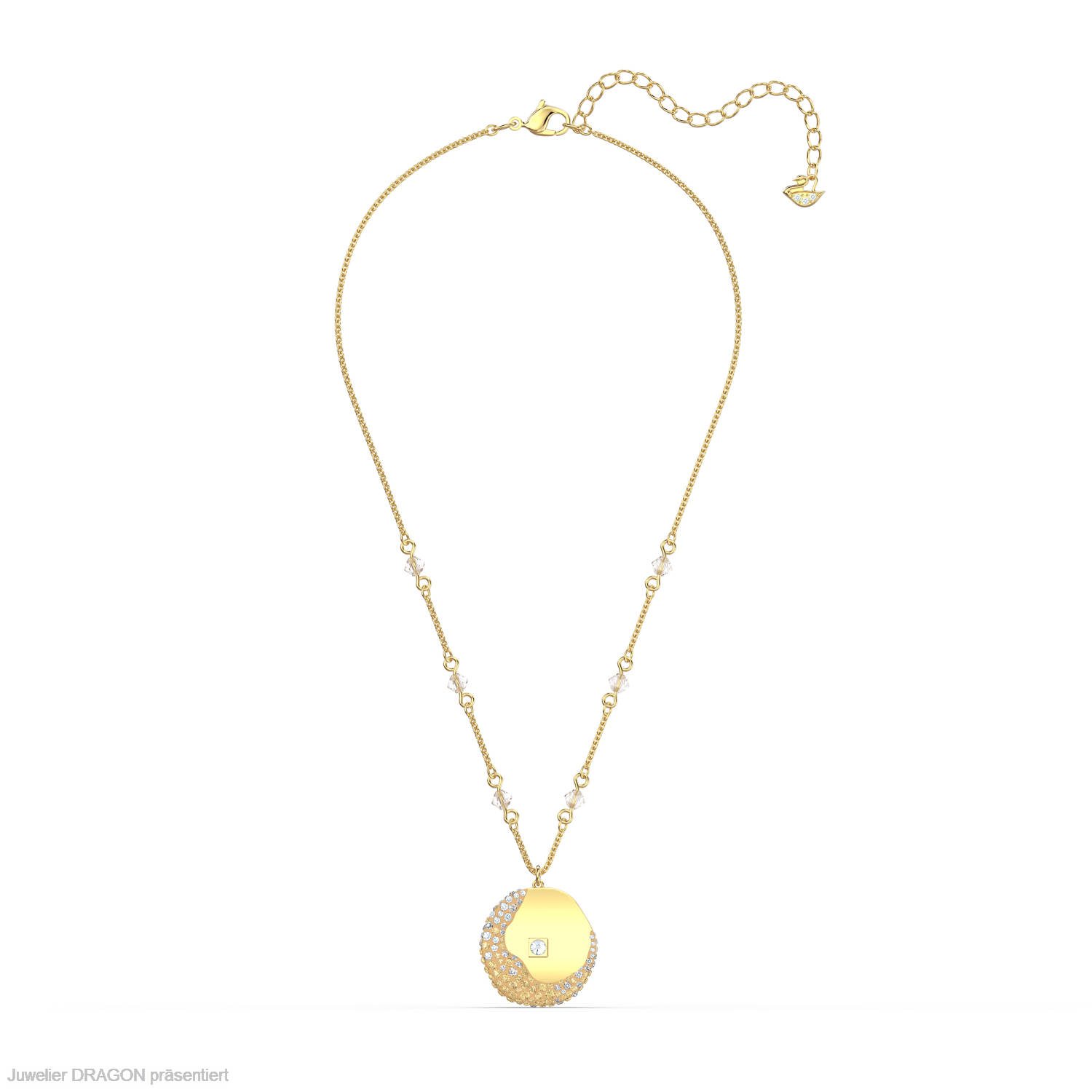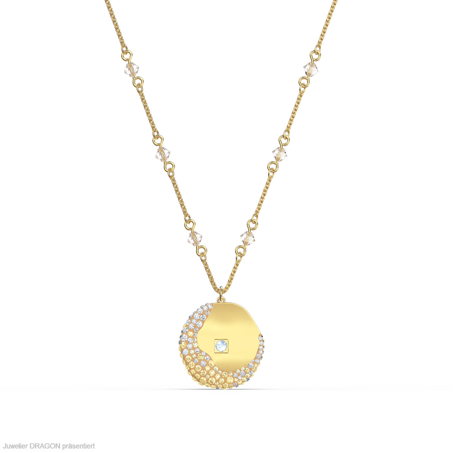 Dieser prachtvolle Anhänger von Swarovski ist vom Naturelement der Luft inspiriert. Das schimmernde Medaillon im Blickzentrum glänzt teilweise mit vielen beige- und silberfarbenen Kristallen in der kultigen Pointiage® Technik von Swarovski. Mitten im Medaillon funkelt ein rundes, klares Kristallelement, von dem man den Blick einfach nicht abwenden kann. Die glänzende Kette mit weiteren präzise facettierten Kristallen und einem sicheren Karabinerverschluss rundet das Design punktgenau ab. Dieser Anhänger ist ein herrliches Must-have und die perfekte Wahl für Stil-Profis, die ihren Tages-Look individuell kuratieren möchten.