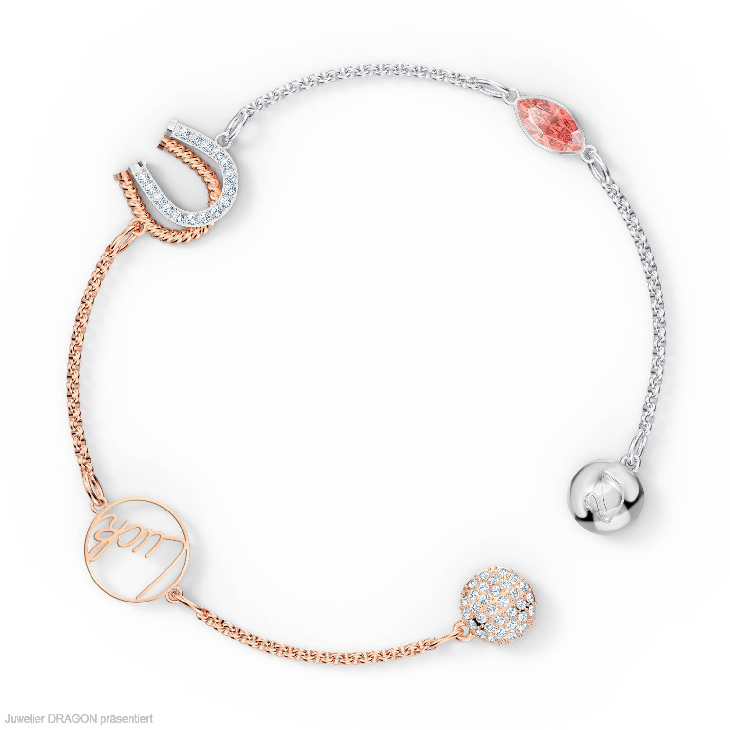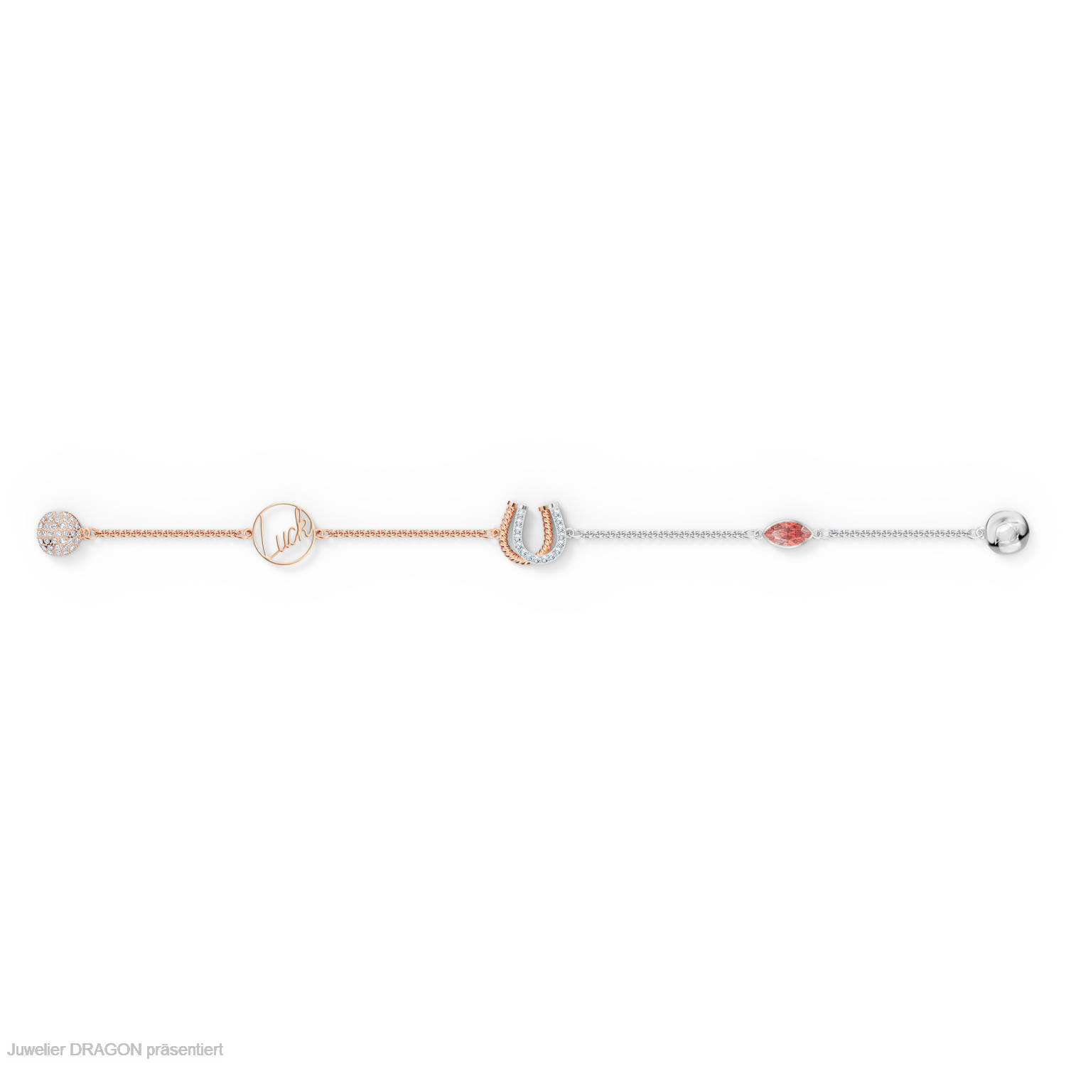 Diese Strand aus der Swarovski Remix Collection ist ein trendiger Glücksbringer mit modernem Flair. An der Kette hängen zwei Hufeisen, der schimmernde Wunsch Luck und ein tiefrot funkelndes Kristallelement. Der perfekt integrierte Magnetverschluss in klarem Kristallpavé rundet das Design super ab. Mix it up! Seine schlichte Eleganz macht diese geschmeidige und zugleich hochmodische Strand zum perfekten Begleiter für viele andere Accessoires aus der Swarovski Remix Collection. Ob stylischer Choker, Halsketten oder doppelt gewickelte Armbänder deiner individuellen Kreativität sind keine Grenzen gesetzt! Dieser Glücksbringer ist auch eine treffsichere Geschenkidee.