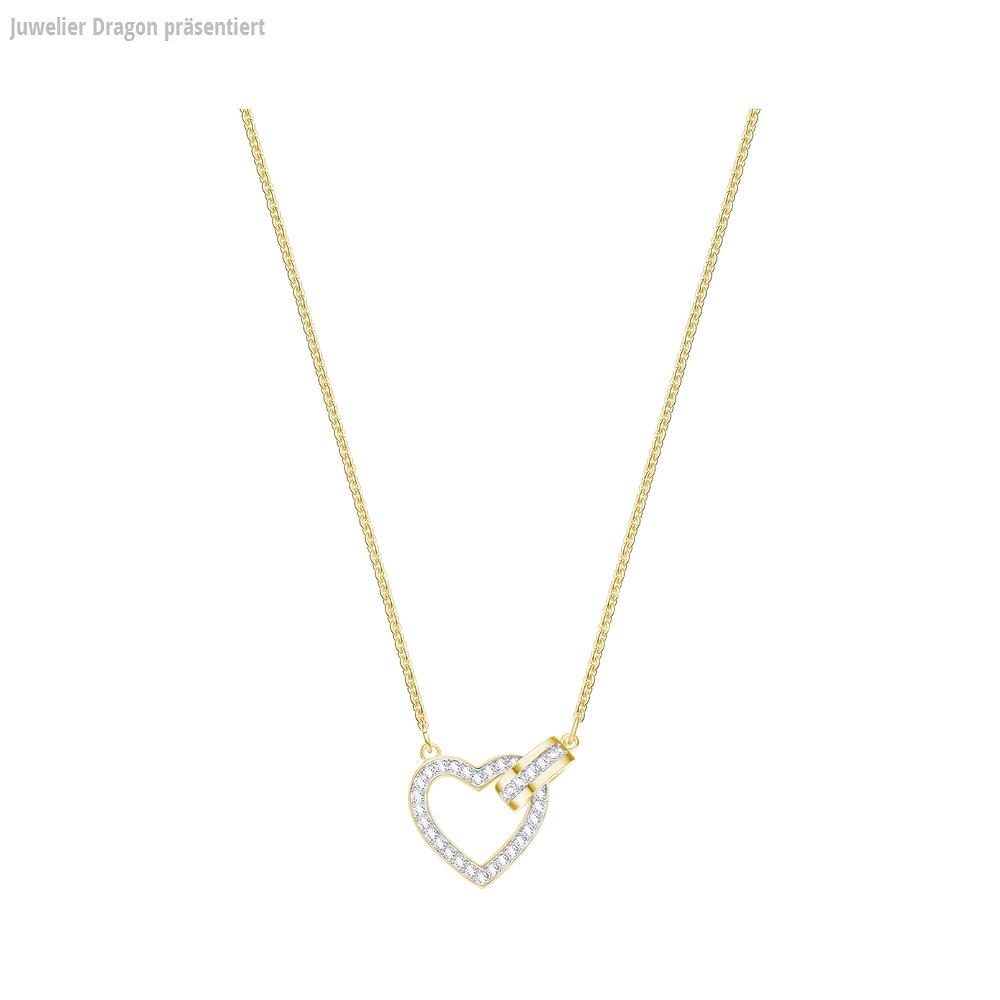 Mit dieser beliebten Halskette feiern Sie die Liebe und romantische Stunden. Ring und Herz passen genau ineinander und sind das perfekte Symbol für die innige Verbundenheit zwischen zwei Menschen. Aus der vergoldeten Kreation mit einem Hauch von klarem Kristallpavé spricht das einzigartige Funkeln von Swarovski. Der edle Alleskönner ist ideal für jeden Tag und passt zu vielen Outfits. Wäre das nicht eine faszinierende Geschenkidee?