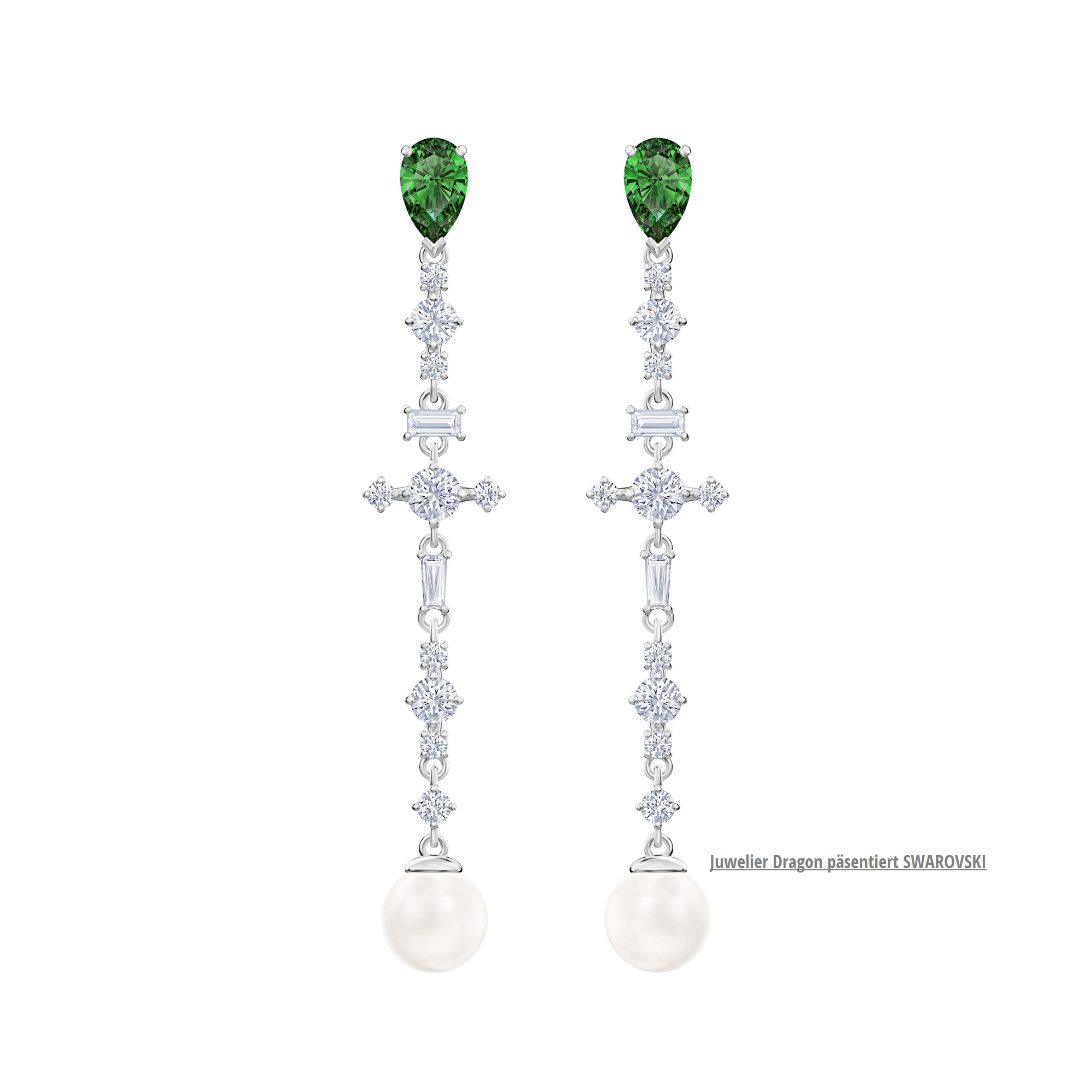 Die rhodinierte Perfection Linie von Swarovski ist von den aktuellen Trends im modernen Schmuckdesign inspiriert. Diese modischen, langen Ohrhänger vereinen viele verschiedene Materialien in sich, darunter grüne Elemente und klassische Kristallperlen von Swarovski. Das ist zeitlos schöner, strahlender Glanz! Mit diesen Highlights adeln Sie jeden Tages- oder Abendlook.