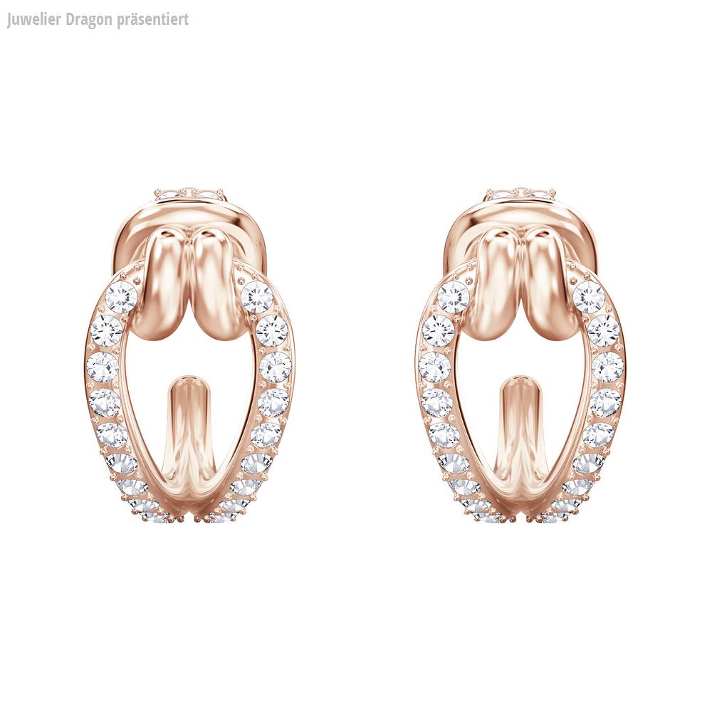Schenken Sie Glanz und Glamour! Diese zierlichen Ohrringe sind einfach ideal. Das moderne Knotenmotiv ist das perfekte Symbol für die innige Verbundenheit zwischen zwei Menschen. Kristallpavé und rotgold glänzende Akzente vereinen sich zu einem coolen, romantischen Look mit dem unwiderstehlichen Funkeln von Swarovski.