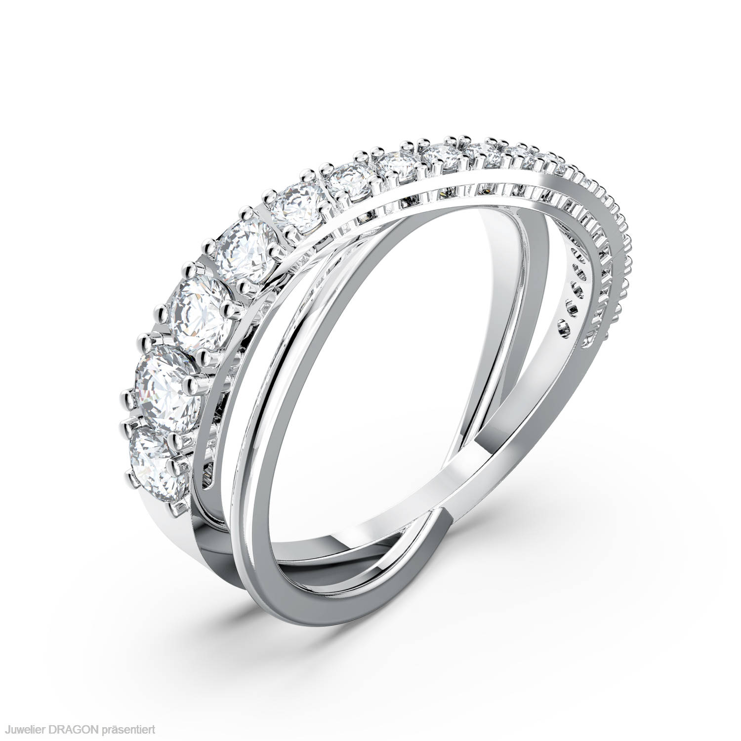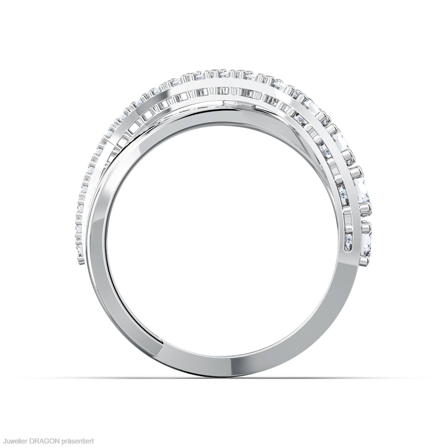Suchst du einen zeitlos schönen, stilvollen Klassiker oder einen brillant funkelnden Hingucker mit puristischen Tendenzen? Dieser Ring von Swarovski bietet beides in einer inspirierenden Neufassung des angesagten Spiraltrends. Er fesselt mit zwei elegant ineinandergreifenden Schwüngen, von denen einer mit brillant funkelnden weißen Elementen bezaubert. Das schlichte Design eignet sich für den Alltag und vollendet deinen Style mit einem Hauch von brillanter Schönheit.