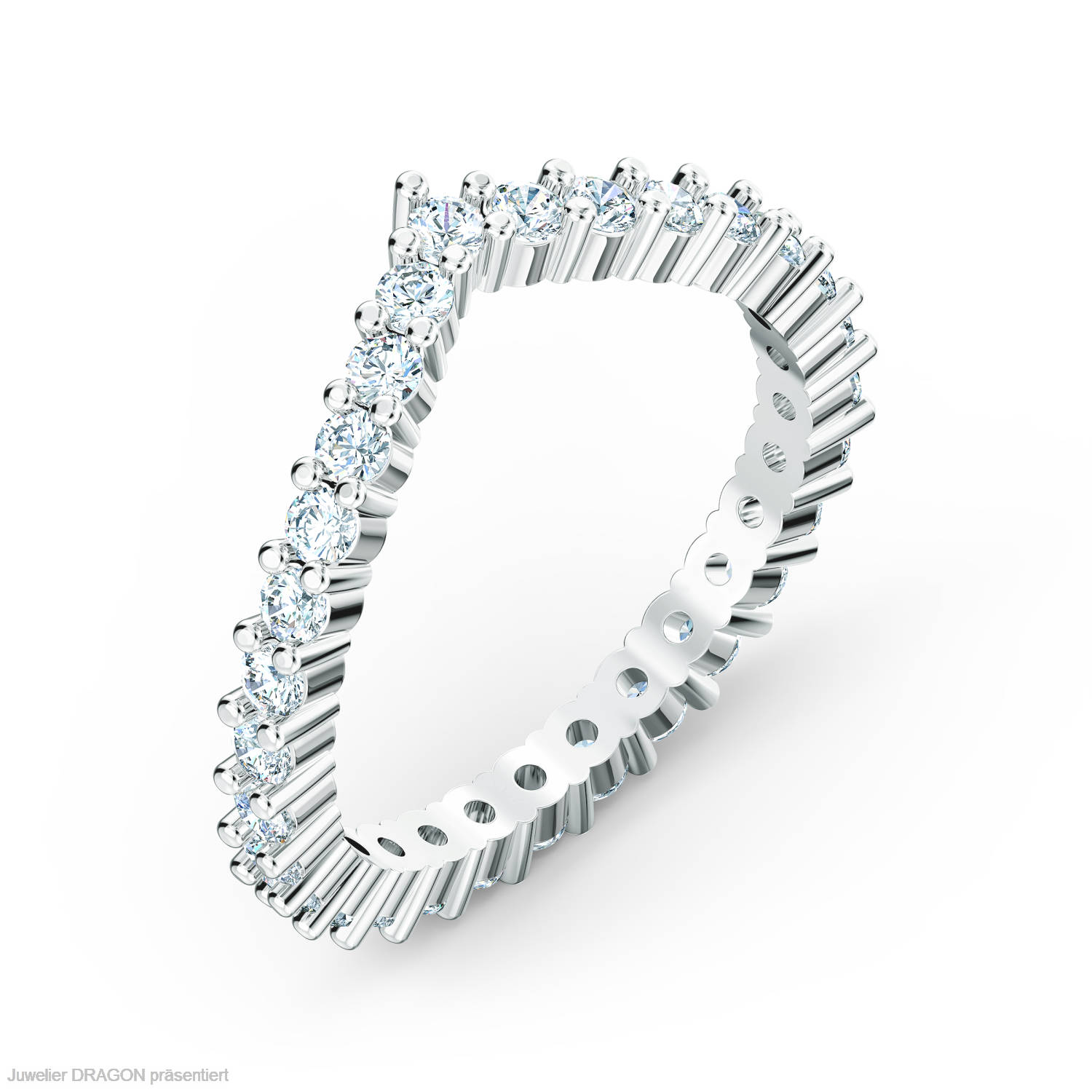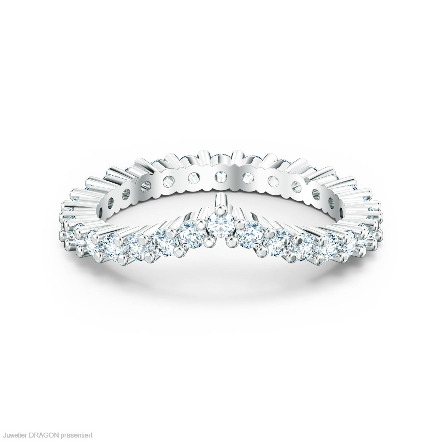 Das herrliche Funkeln dieses Rings von Swarovski unterstreicht viele andere Schmuckstücke mit glanzvollen Akzenten. Viele weiße Rundelemente verfeinern die trendige V-Form im Blickpunkt . Das puristische Design und der schimmernde Charme dieses Schmuckstücks sind ideal für den angesagten Stacking Look mit vielen anderen dazu passenden Ringen. Diesen Look hast nur du ! Natürlich ist dieser Ring auch die perfekte, relaxte Geschenkidee für alle, die auf inspiriertes Design nicht verzichten können.